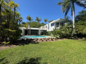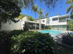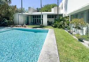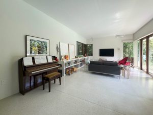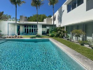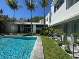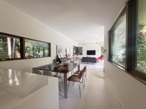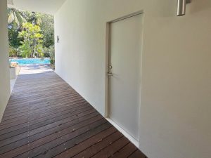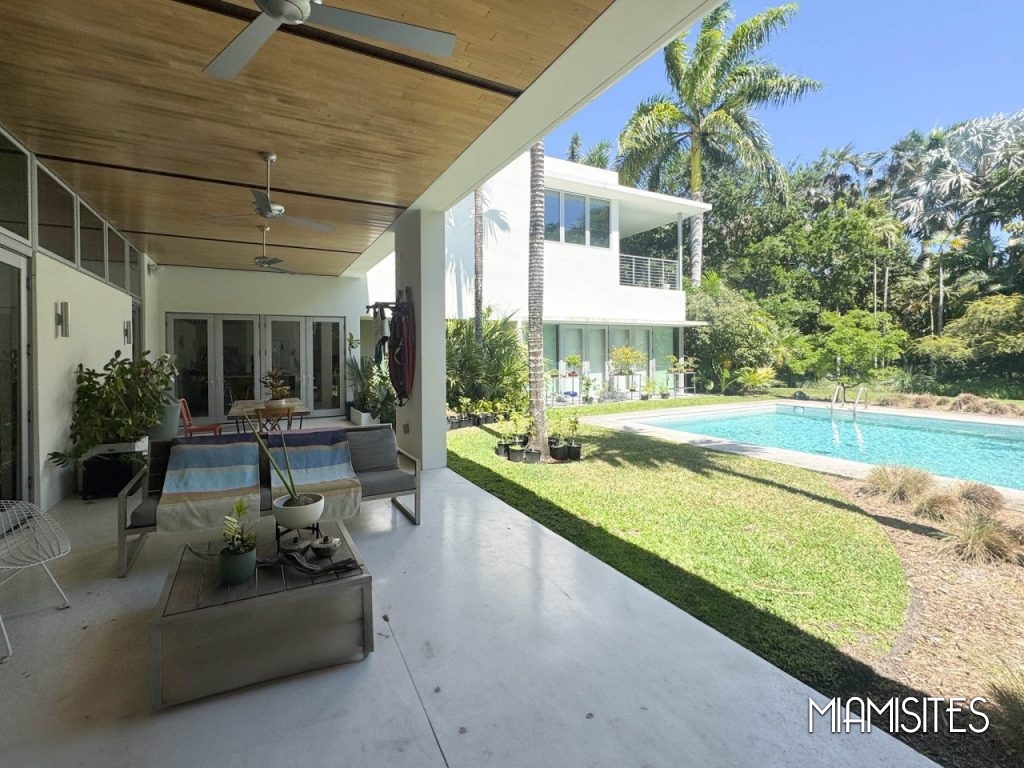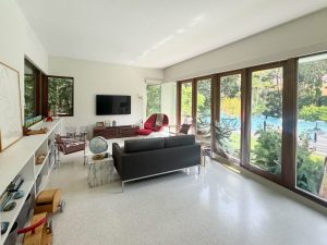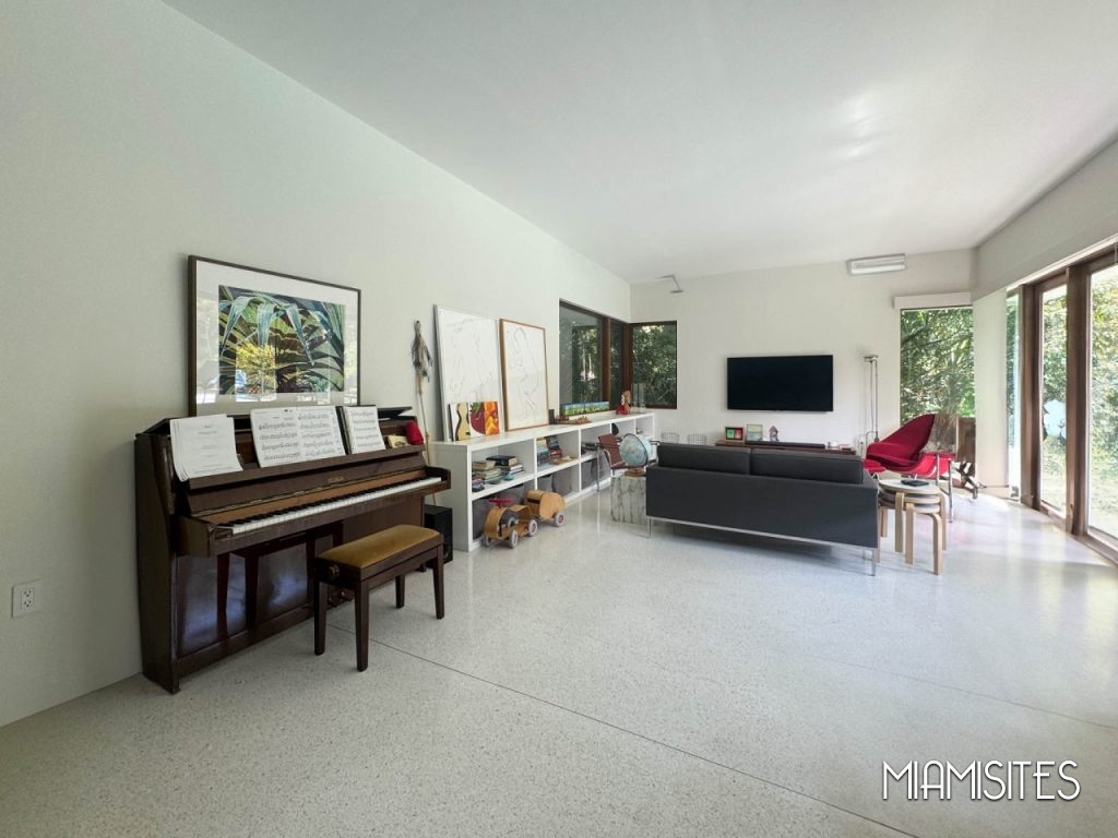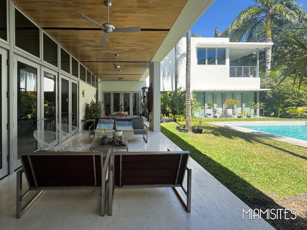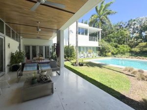 Glass Doors all thru out the back while opens up to the outdoor living/pool area.