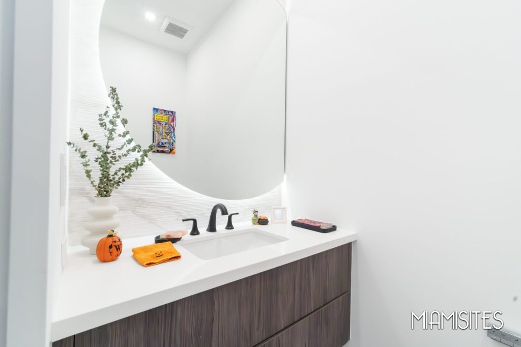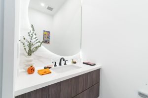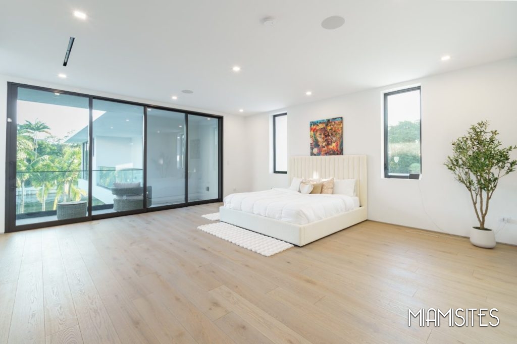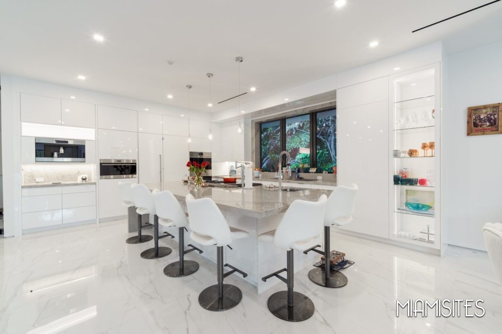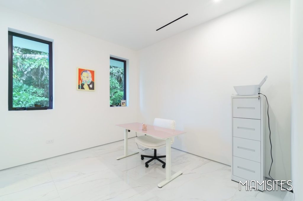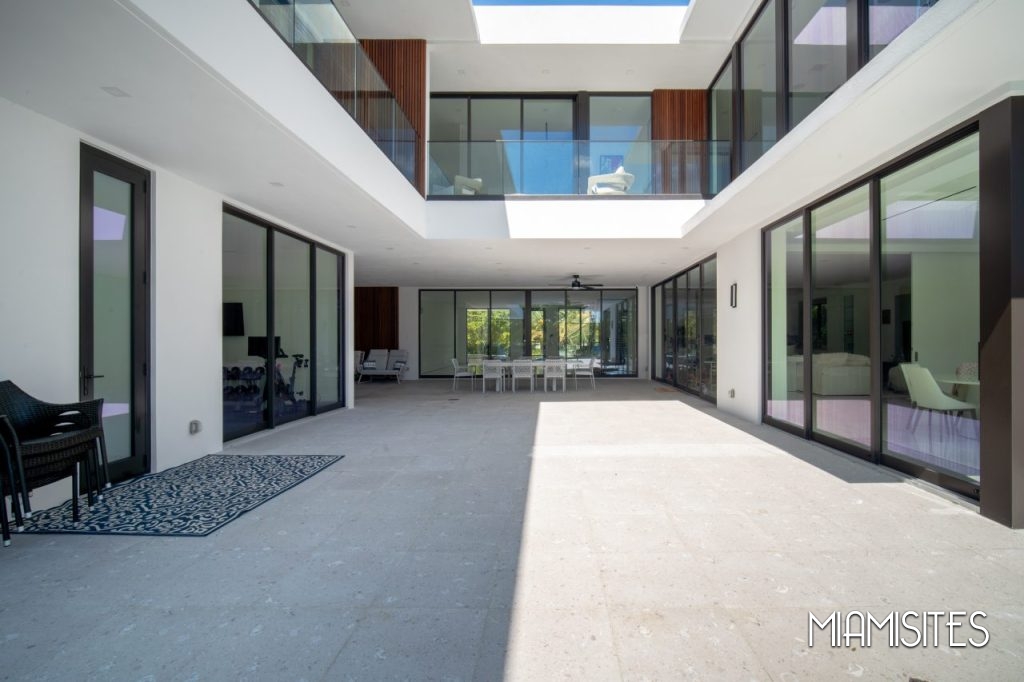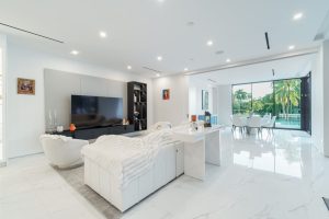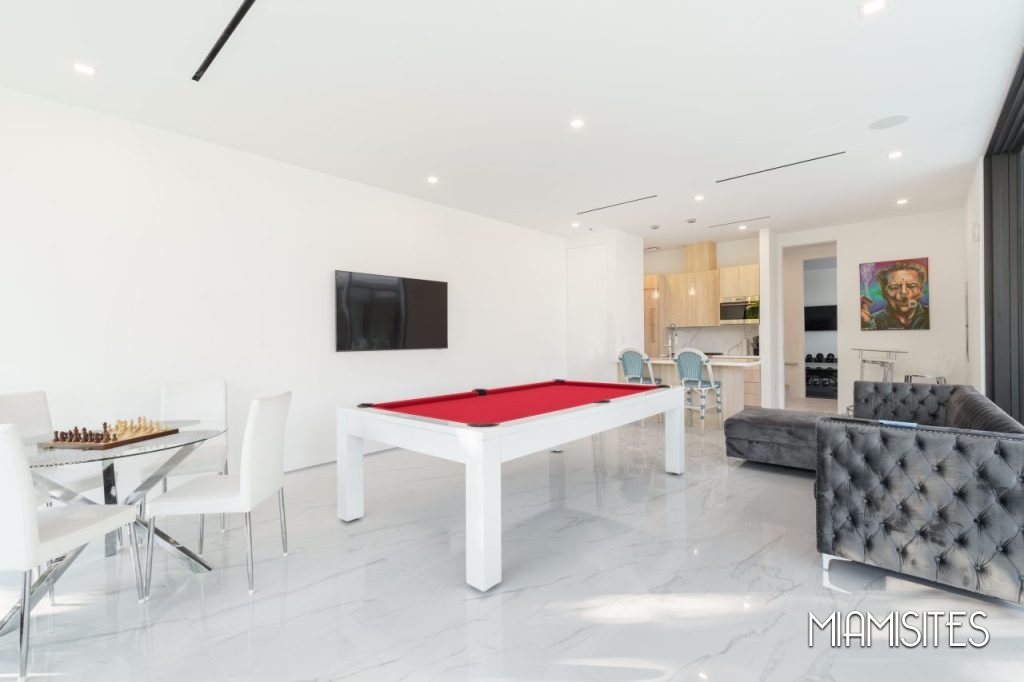 The home features sleek white floors and walls, creating a high-contrast visual canvas that pops beautifully against rich dark wood and metal accents. Whether you’re capturing high-end fashion, filming lifestyle content, or hosting a visionary brand experience, this property offers unmatched versatility.