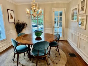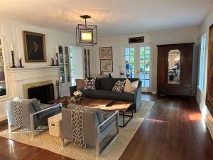 Inside, the home features warm, inviting interiors with beautiful natural light, original wood floors, a traditional dining room, and a cozy living room centered around a fireplace. Decorative molding, French doors, and curated furnishings add a refined yet approachable feel. Every room offers clean, camera-ready lines and multiple shooting angles.