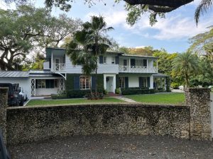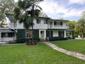 This rare two-story Colonial-style home offers the perfect Anywhere USA backdrop right in the center of Miami. With its white clapboard exterior, blue shutters, double balconies, and traditional architectural details, the property provides a timeless, all-American look that can double for countless cities and suburbs across the U.S.—from the East Coast to the Midwest.