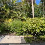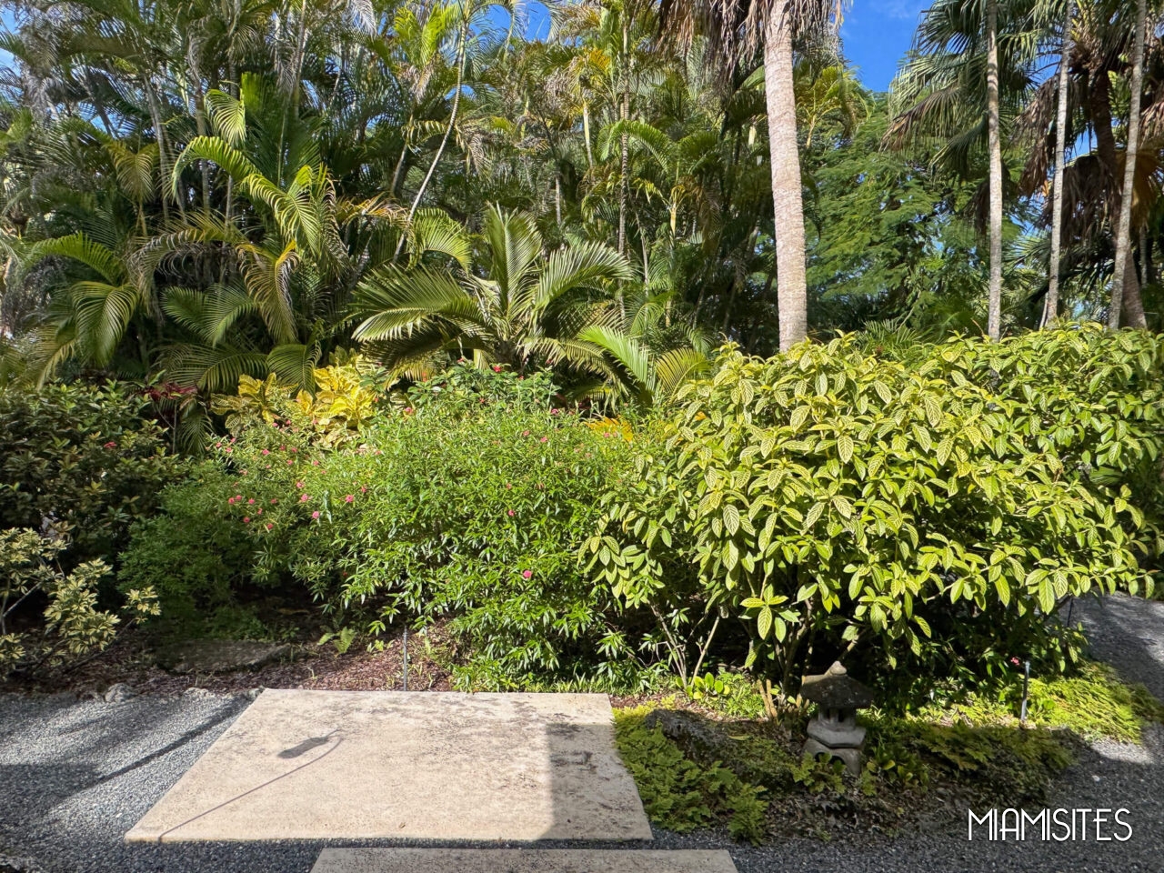 Lush landscaped garden and mature palms