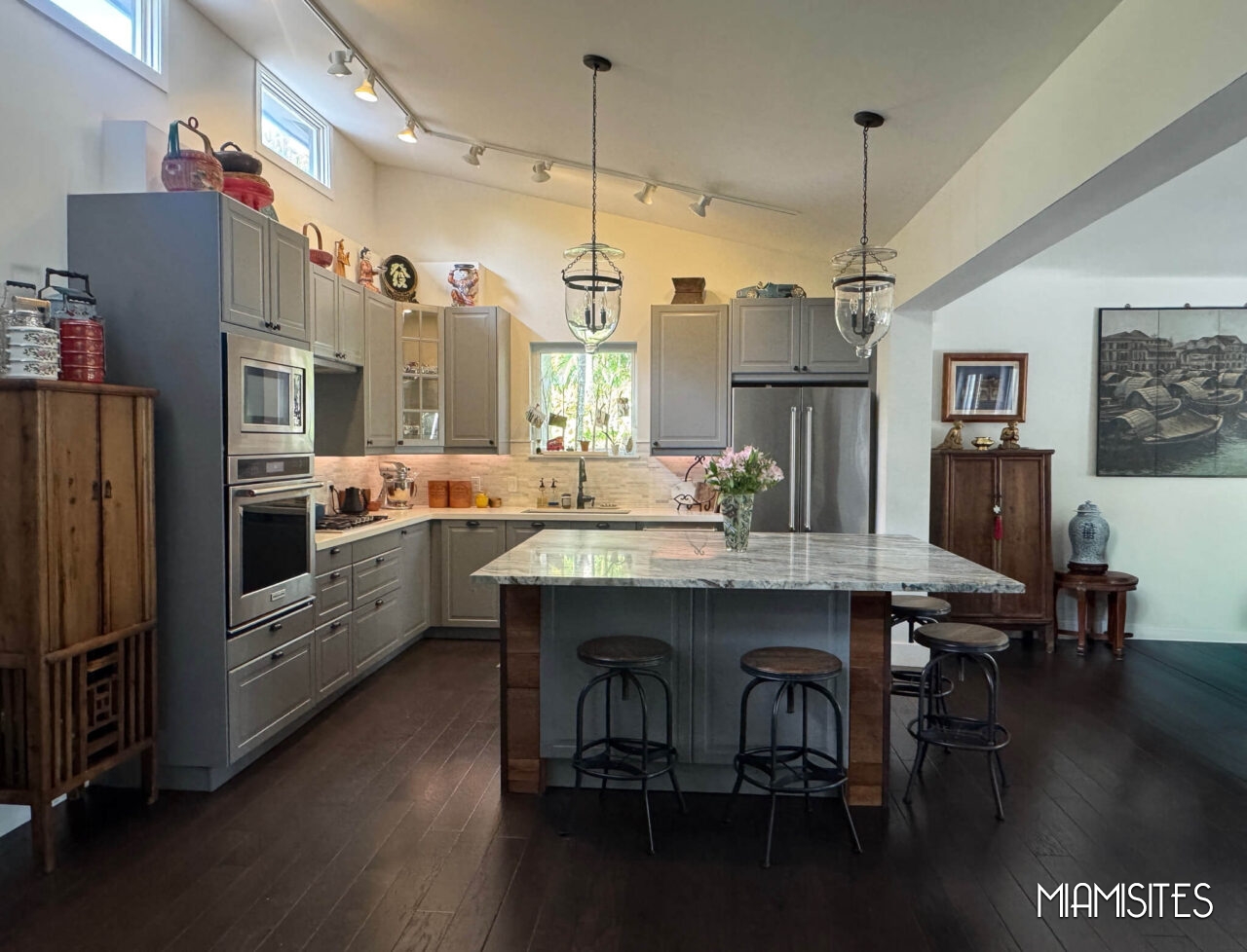 Stylish chef kitchen with large island